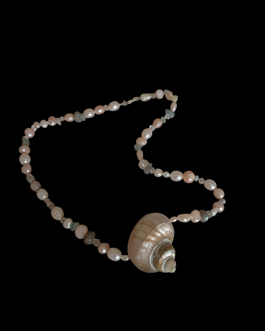 The Flow State Collection showcases wisdom from the ocean and the moon. Lots of spirals from beloved shells, pearls and gems that represent the water. My intention from this collection is to bring clarity, balance and trust. The phases of the moon fall in synch with our bodies, women especially; and act as a guide to how we can cycle and navigate ourselves. The ebbs and flows of the ocean reflect our own lives. We are to always face highs, lows, ups and downs.